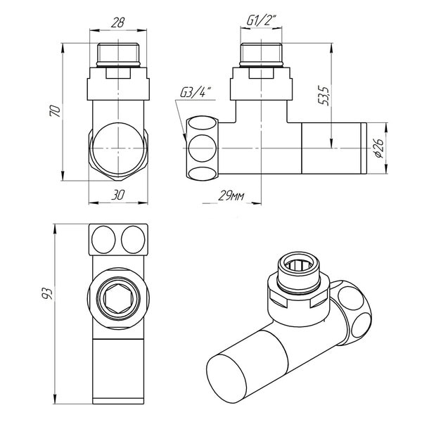 Der Eckventil für Badeheizkörper und Dekorationen Luxon ZZ-4702 ist im klassischen Stil ausgeführt. Das Produkt eignet sich optimal für die versteckte Installation von Wasserkörpern in beliebiger Form und Konfiguration mit inneren Gewindeanschlüssen 1/2″. Der Ventil ist mit zwei amerikanischen Muttern ausgestattet, die den Montage- und Anschlussprozess erheblich vereinfachen, und die Abschalt- und Kontrollfunktion ermöglicht eine lokale Trennung des Heizkörpers von der Heizungsanlage und die Regulierung seiner Heizung.